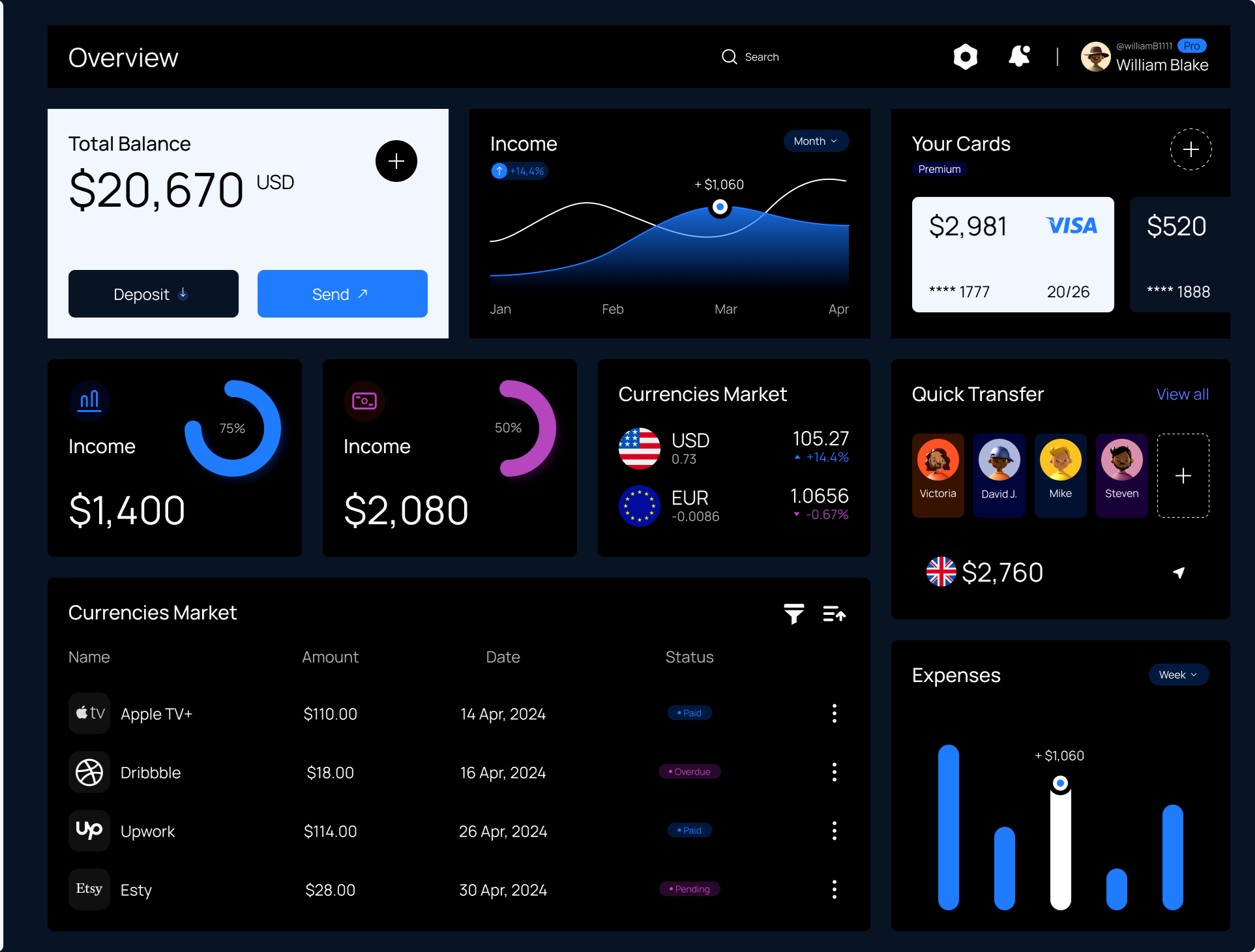 Simple dashboard to track visitors (via Google Analytics).